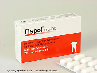 Die Tispol Ibu DD Filmtabletten werden zur Behandlung von leichten bis stärkeren Schmerzen und Entzündungen angewendet. Die Filmtabletten enthalten den Wirkstoff Ibuprofen in einer Dosierung von 400 mg pro Filmtablette, sowie den Hilfsstoff Lysinsalz. Durch das Ibuprofen kommt es zur Hemmung der Prostaglandine und dadurch zu einer Linderung von Schmerzen und einer Hemmung von Entzündungen. Durch den Zusatz des Lysinsalzes wirken die Tispol Ibu DD Filmtabletten besonders schnell.